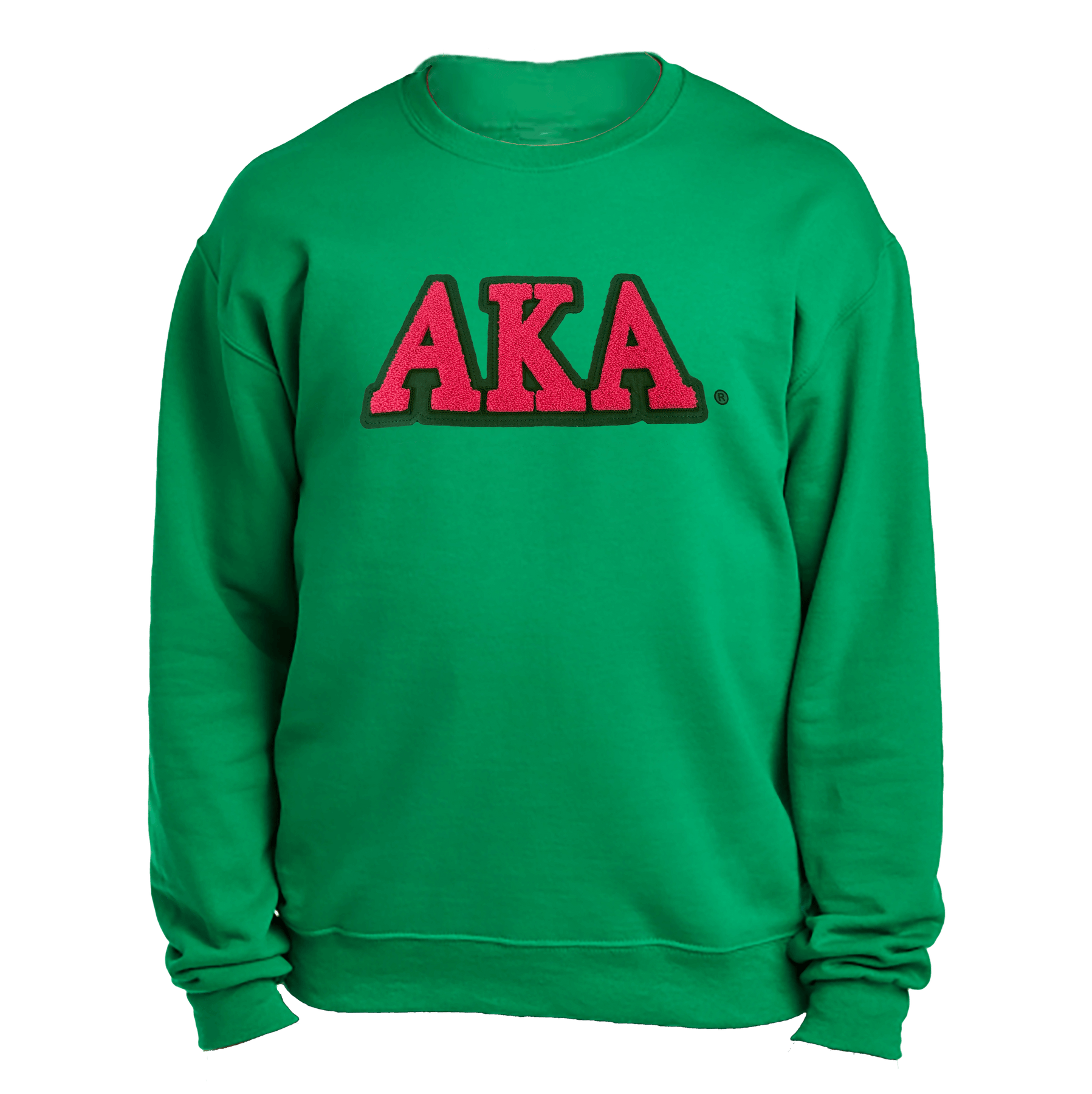 AKA embroidered chenille symbols green sweatshirt, perfect for sorority and fraternity Greek gear enthusiasts.