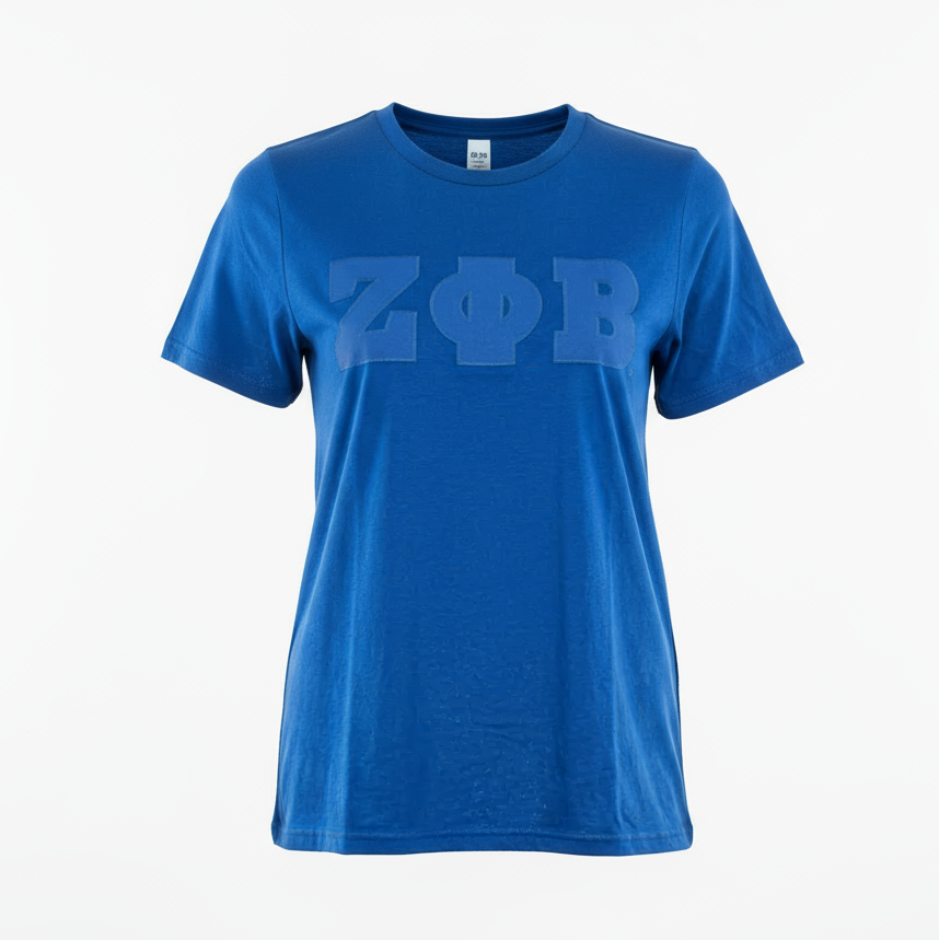 • Royal blue T-shirt with tonal embroidered ZΦB® Greek letters